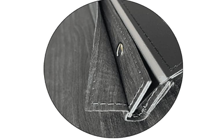Bij het verborgen schroefsysteem zijn de schroeven stijlvol weggewerkt in de menukaart. Hierdoor ontstaat een strakke en luxe uitstraling waarbij het bevestigingssysteem niet zichtbaar is voor uw gasten.